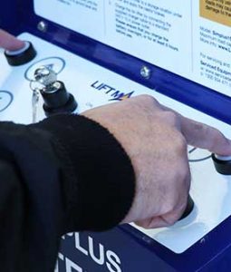 The push-button control panel on the Simplicity Plus bin lifter and tipper